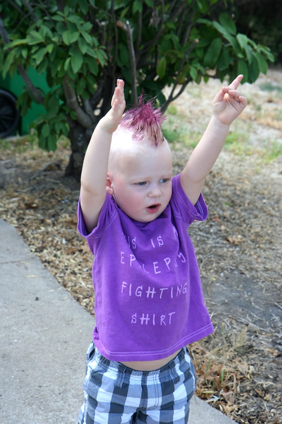 He is on high doses of steroids which don't help either. He is just mostly a cranky child. But the awesome news is that he is exactly the same child that went into surgery! He is talking the same and screaming "all done" anytime a nurse walks in the room, he can move both sides, pass objects between his hands, raise his hands up, self feed, kick his legs, and play just like before. And the best part is that we haven't seen a seizure since!